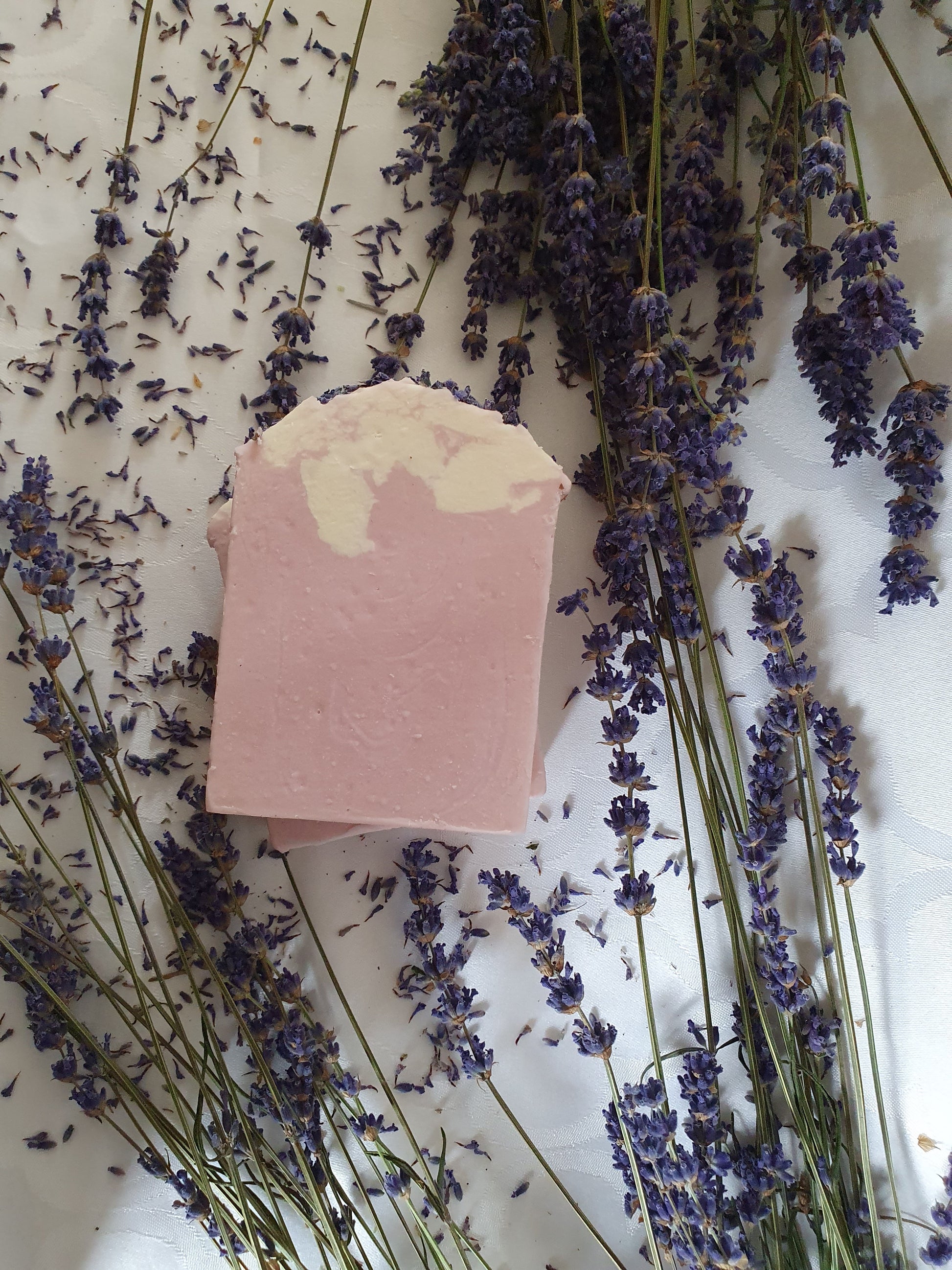 We made our own lavender oil by using home-grown lavender from our garden in this recipe to create a unique scent! Top notes are lavender, which melts in to the middle notes of orange zest which then simmers down to a sweet vanilla combined with cocoa butter, coconut oil, olive oil and shea butter to moisturise and cleanse the skin.